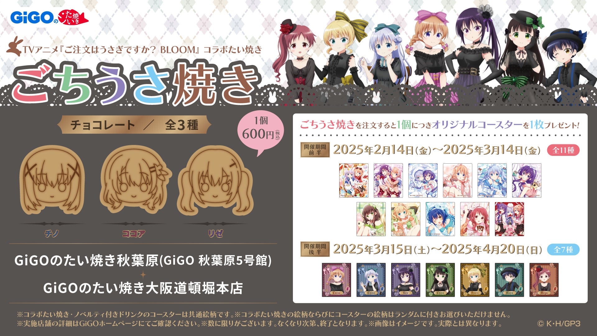 2月14日(金)・ 15日(土)・16日(日)の「ごちうさ焼き」はGiGOアプリでの抽選販売を予定しています。