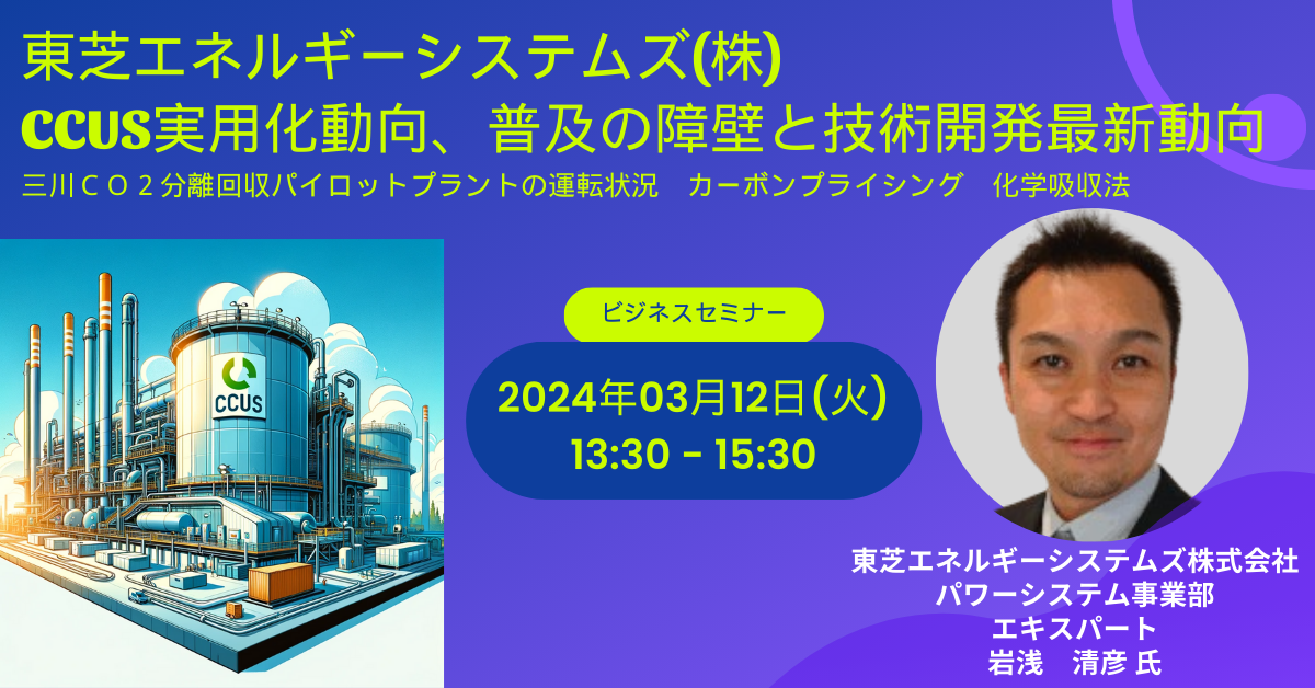 【JPIセミナー】東芝エネルギーシステムズ(株)「 CCUS実用化動向、普及の障壁と技術開発最新動向」3月12日(火)開催