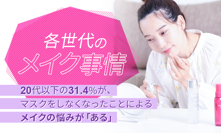 【各世代のメイク事情】20代以下の31.4%が、マスクをしなくなったことによるメイクの悩みが「ある」