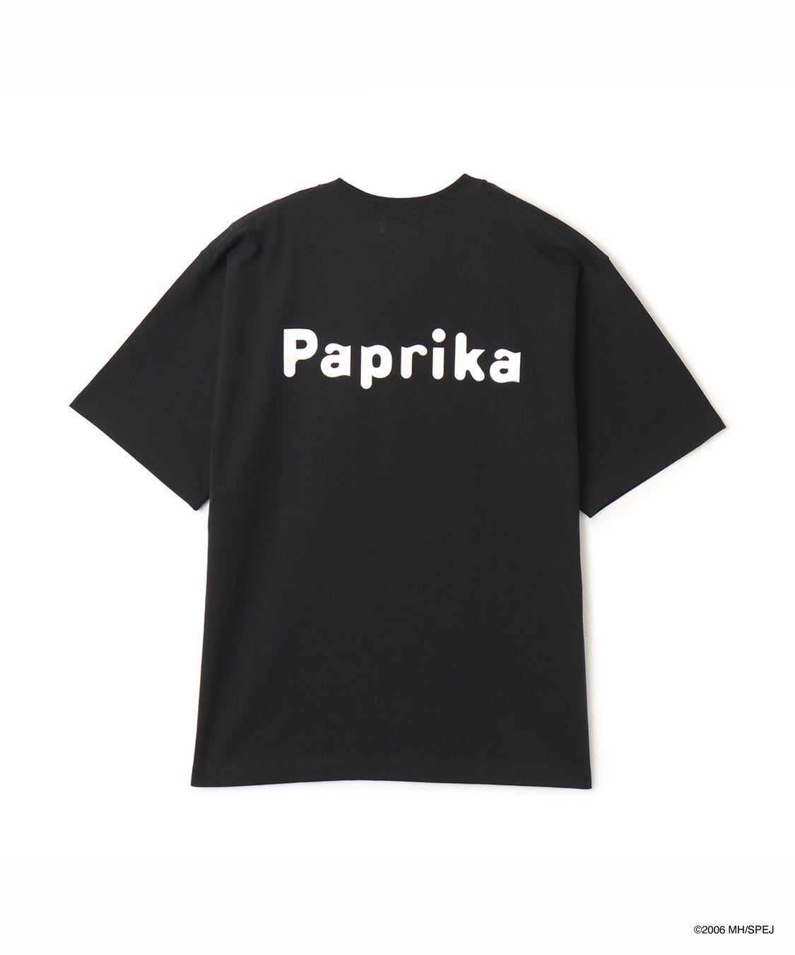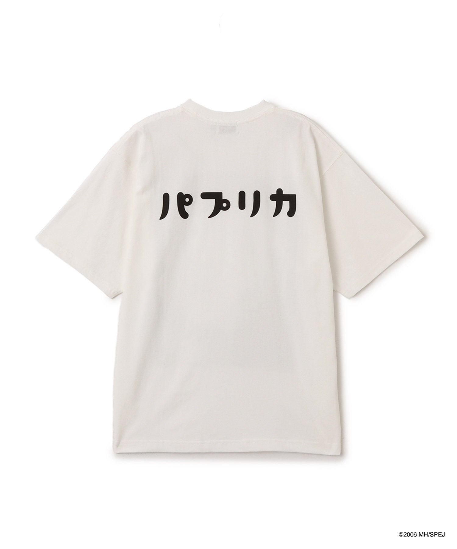 本作の象徴である鮮烈な色彩を再現するため、“15版”のシルクスクリーンプリントを採用。高度な分解技術を要するため、特殊な技術を駆使して制作。生地にはオープンエンド紡績機で紡いだ空気を含む太めの糸を使用した天竺を採用し、独特のガサ感とドライな風合いを表現。グラフィックには「パプリカ」のビジュアルを落とし込み、アイコニックに演出。