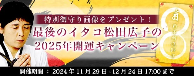 ※『2025年開運キャンペーン』に参加するためには、公式占いサイト「恐山の秘術【最後のイタコ】松田広子」(https://mtditako.net)への会員登録が必要です。