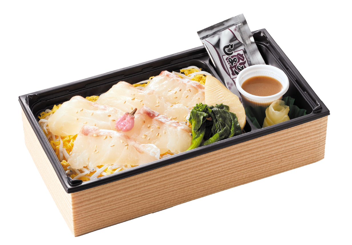 真鯛5枚を贅沢に盛り付け、旨み豊かな釜揚げしらすを合わせた、満足感のあるお重です。