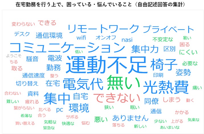 ・在宅勤務の課題として、光熱費・電気代の負担やコミュニケーション・人間関係のストレスが挙げられました。