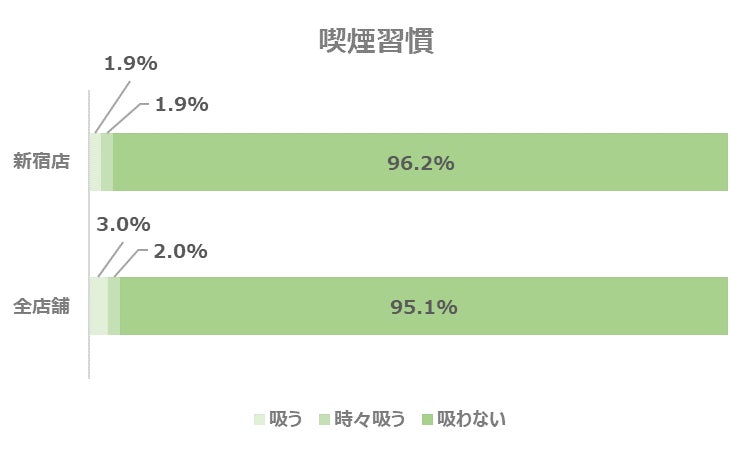 全店舗と比較すると、飲酒の習慣のある方がやや多い結果となりました。
