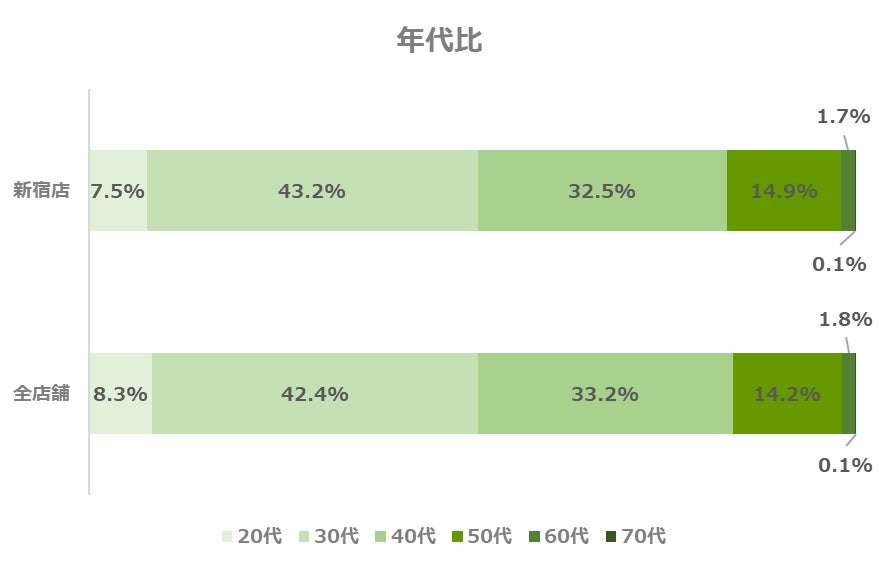 女性は20代の割合はやや低いものの、30~40代の割合が高い点は全店舗と同様の傾向です。