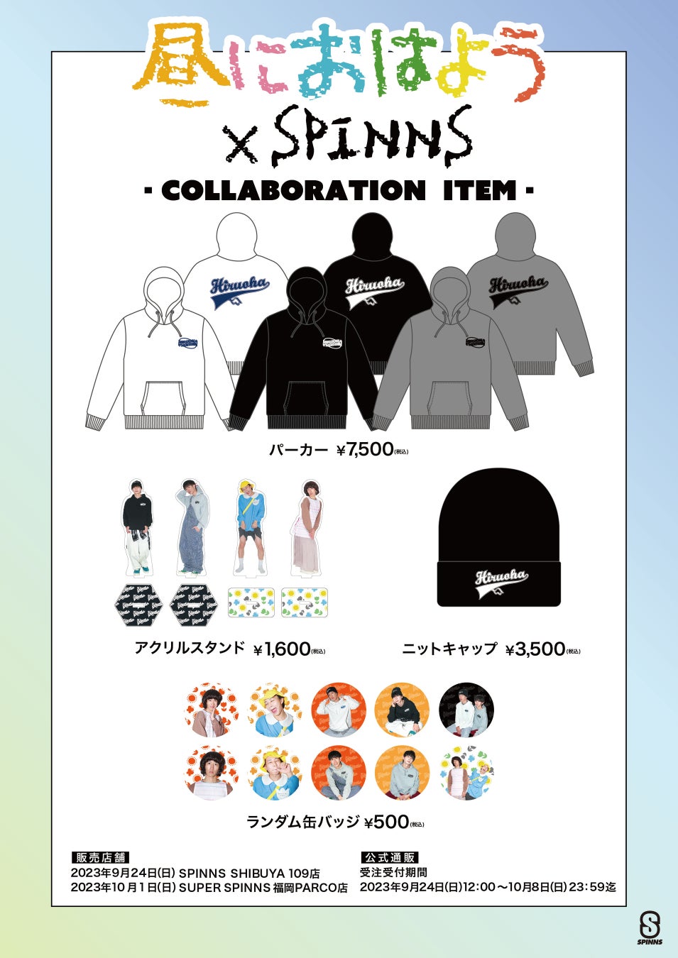 大人気クリエイター「昼におはよう」×SPINNSのコラボレーションアイテム発売決定!さらに!SPINNS2店舗にて来店イベントも開催!