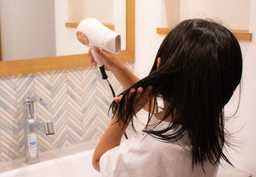 デリケートな髪と頭皮のために、ドライヤーの使い方も、大人とは違うケア方法を心がけましょう。ダメージを抑えるために、夏であれば冷風、冬であれば弱めの温風で頭皮を中心に、髪は早めに8割がた乾かしましょう。ただし、夏でも冷房が効いた室内であれば弱めの温風を使用し、頭皮を冷やしすぎるのは避けましょう。髪は濡れた状態だと膨張して柔らかくなっているため、そのまま寝てしまうと寝ぐせやダメージの原因になることがあります。8割がた乾かして残りの2割は余熱で自然乾燥がおすすめです。