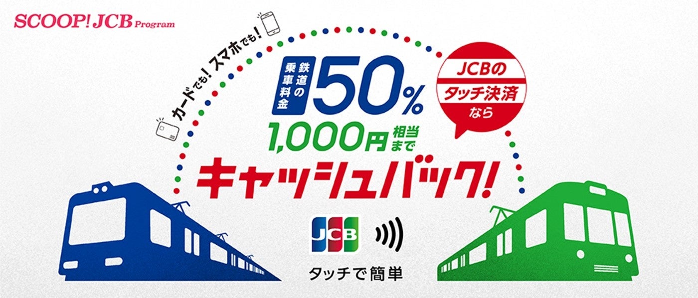JCB、タッチ決済で対象の鉄道に乗ると50%キャッシュバック!