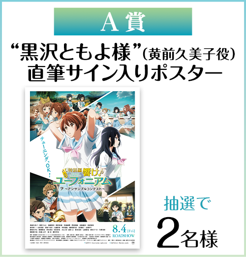 抽選で、黒沢ともよ(黄前久美子役)直筆サイン入りポスターなどの豪華賞品を計7名様にプレゼント。