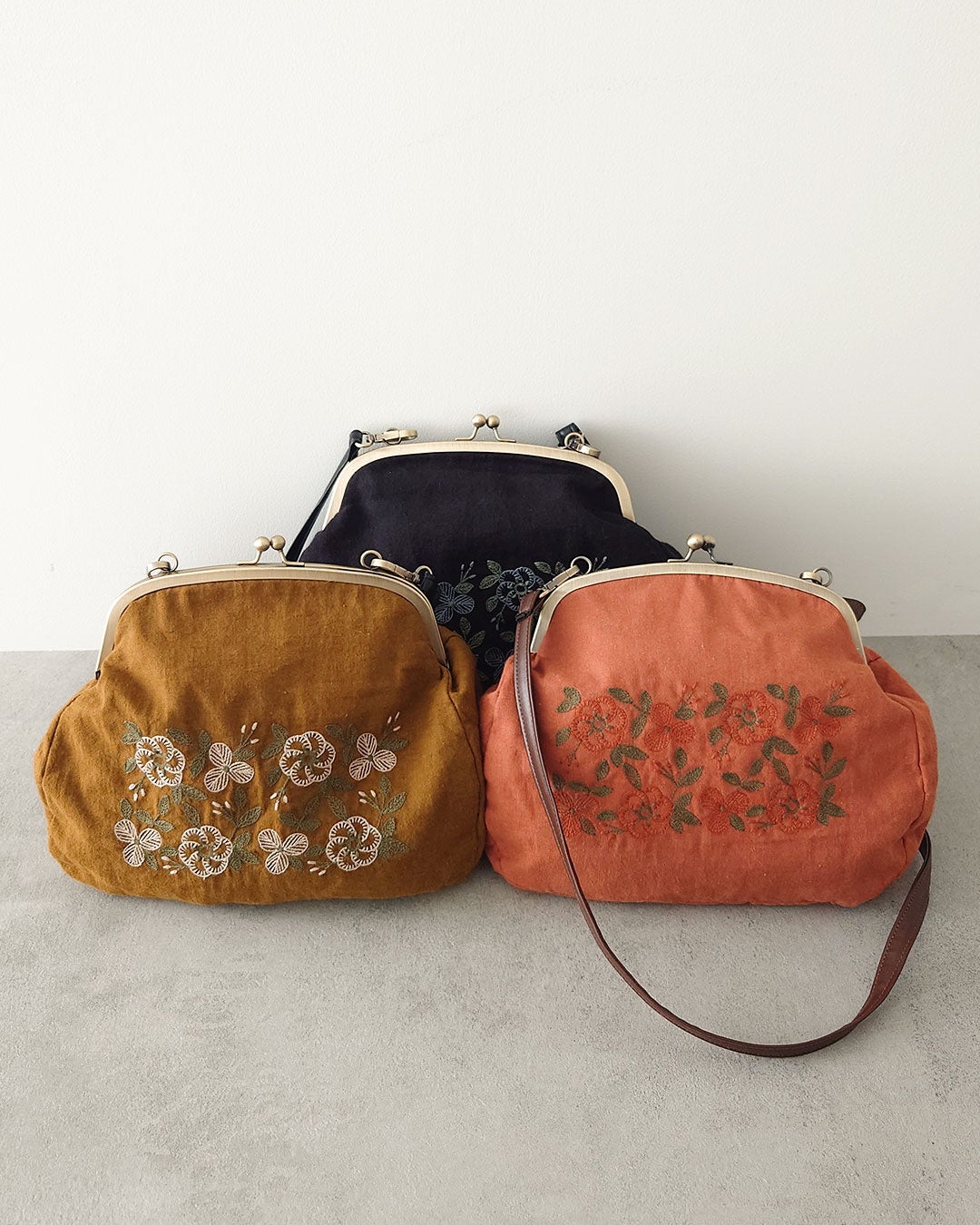 また、ブラウスとバッグに施した花刺繍は、異国でダンスを踊る女の子が着ていた洋服にあしらわれた刺繡をイメージ。懐かしく、リズミカルなその模様を再現しています。ブラウス、バッグともに同素材、同カラーを採用し、単品使いはもちろん、お揃いでコーディネートするのもおすすめです。