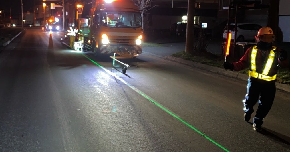 土木・建設分野 : 区画線整備車線の作図工程のラインマーカーとしての利用(墨出し作業の代替)、路上における車線誘導ガイドとしての利用など