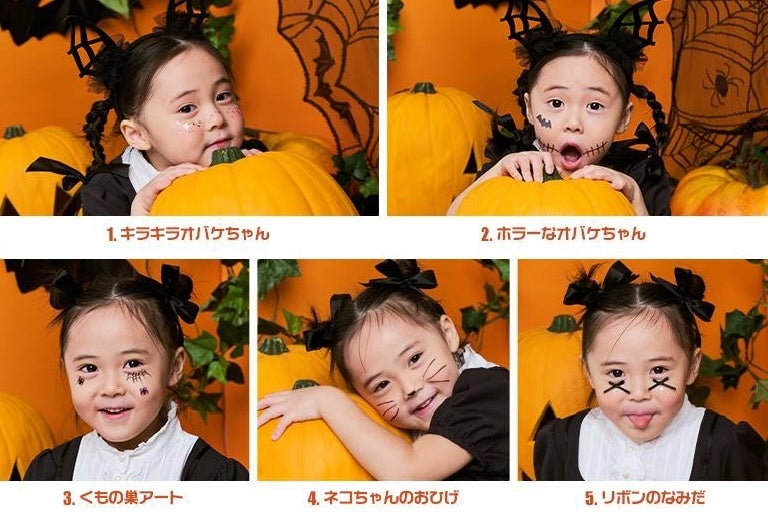 キラキラオバケちゃん・ホラーなオバケちゃん・くもの巣アート ネコちゃんのおひげ・リボンのなみだの 5つのテーマの中から、お好きなメイクをお選びください。 小さなお子様はもちろん、ハロウィンを満喫したい 大人の皆様のご参加もお待ちしています♪