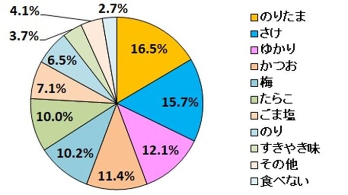 - 好きな味のトップ3は「のりたま」「さけ」「ゆかり」