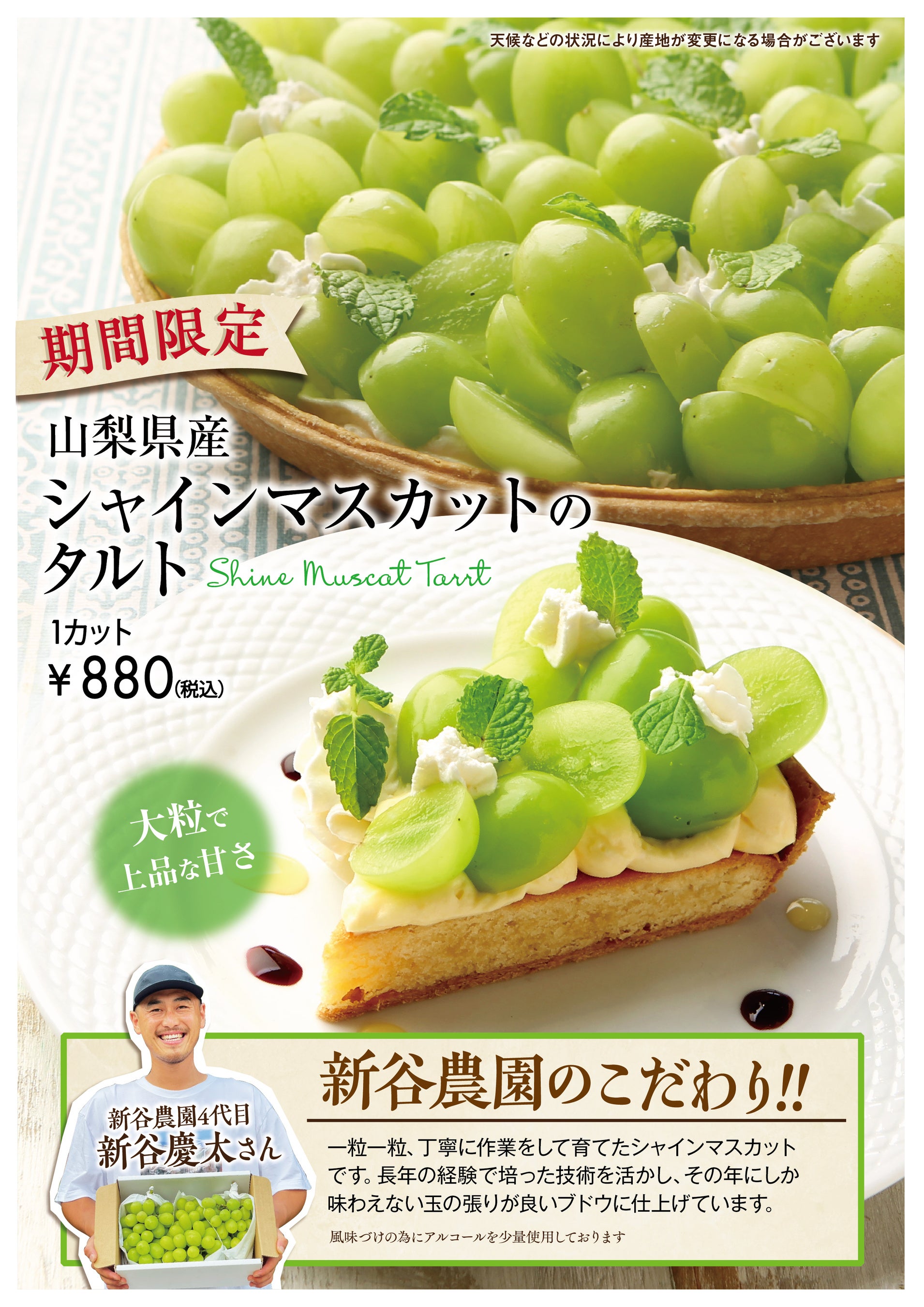 新谷農園 山梨県産シャインマスカットを使用した季節限定の贅沢なタルトです。