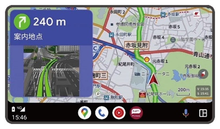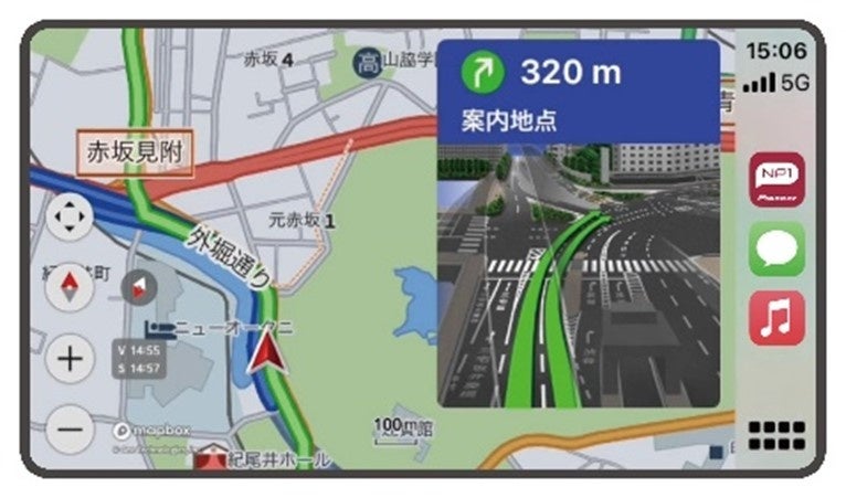 今回実施する大型アップデートにおいて、「NP1」のスマートフォン専用アプリ「My NP1」がApple CarPlayおよびAndroid AutoTMに対応します。「My NP1」の地図画面や誘導・案内画面をApple CarPlay/Android AutoTMに対応したカーナビやディスプレイオーディオなどの大画面に表示することができ、タッチパネルで直感的に操作できます。