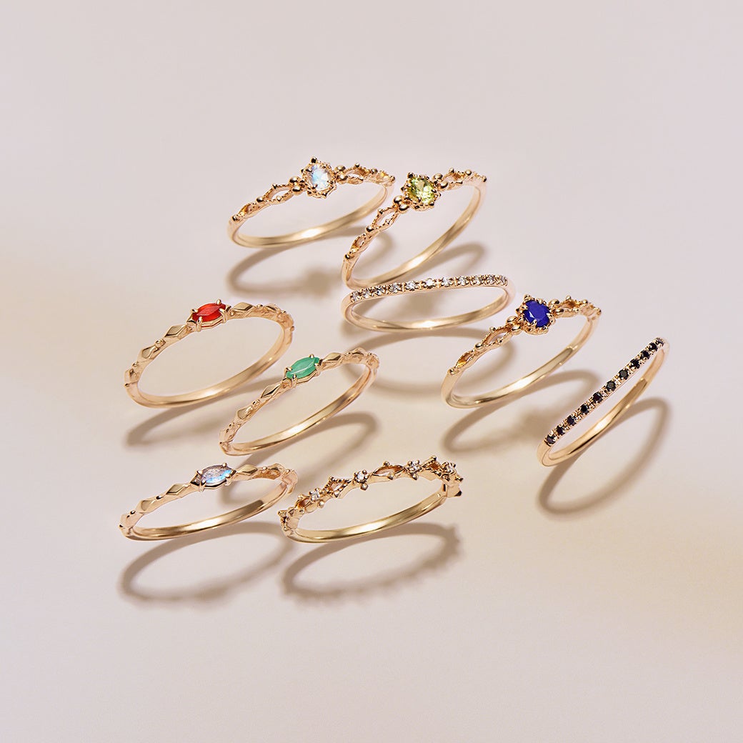 リングにデザインされたポケット(=くぼみ)が、もう1本のリングを包み込んでぴったりフィット。ポケットに手を入れた時のようにすっぽりと収まる、温かな着け心地のレイヤードリングです。ポケットリング全9種類からおすすめの組み合わせをご紹介します。