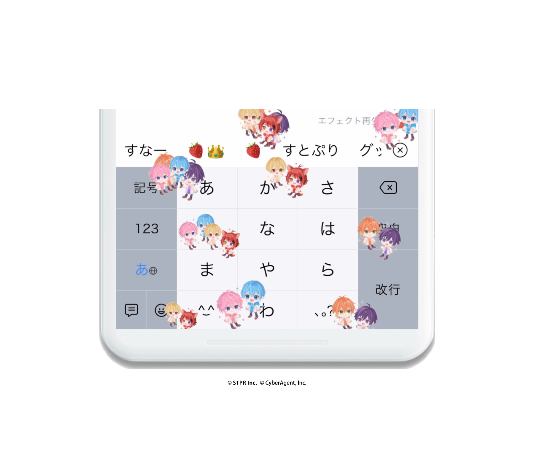 ユーザーが文字を入力し、変換候補より特定のキーワードを選択することで画像や動画がキーボード上に現れる機能です。当コラボでは特定のキーワード「すとぷり」と入力することでエフェクトが再生されます。今回のコラボならではのエフェクトをお楽しみください!