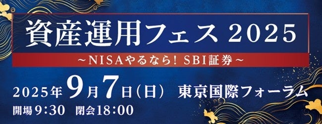 株式会社SBI証券(本社:東京都港区、代表取締役社長:髙村正人、以下「当社」)は、ハイブリッド型(会場+オンライン中継)イベント「資産運用フェス2025~NISAやるなら!SBI証券~」を2025年9月7日(日)に東京国際フォーラムにて開催しますのでお知らせします。
