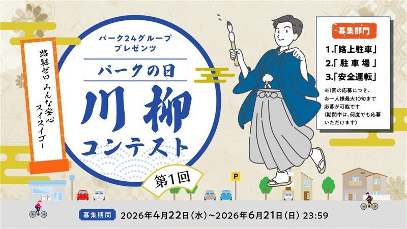 パーク24株式会社(本社:東京都品川区、社長:西川光一、以下「パーク24」)は、路上駐車ゼロに向けた啓発活動として、第1回「パークの日」川柳コンテストを開催します。