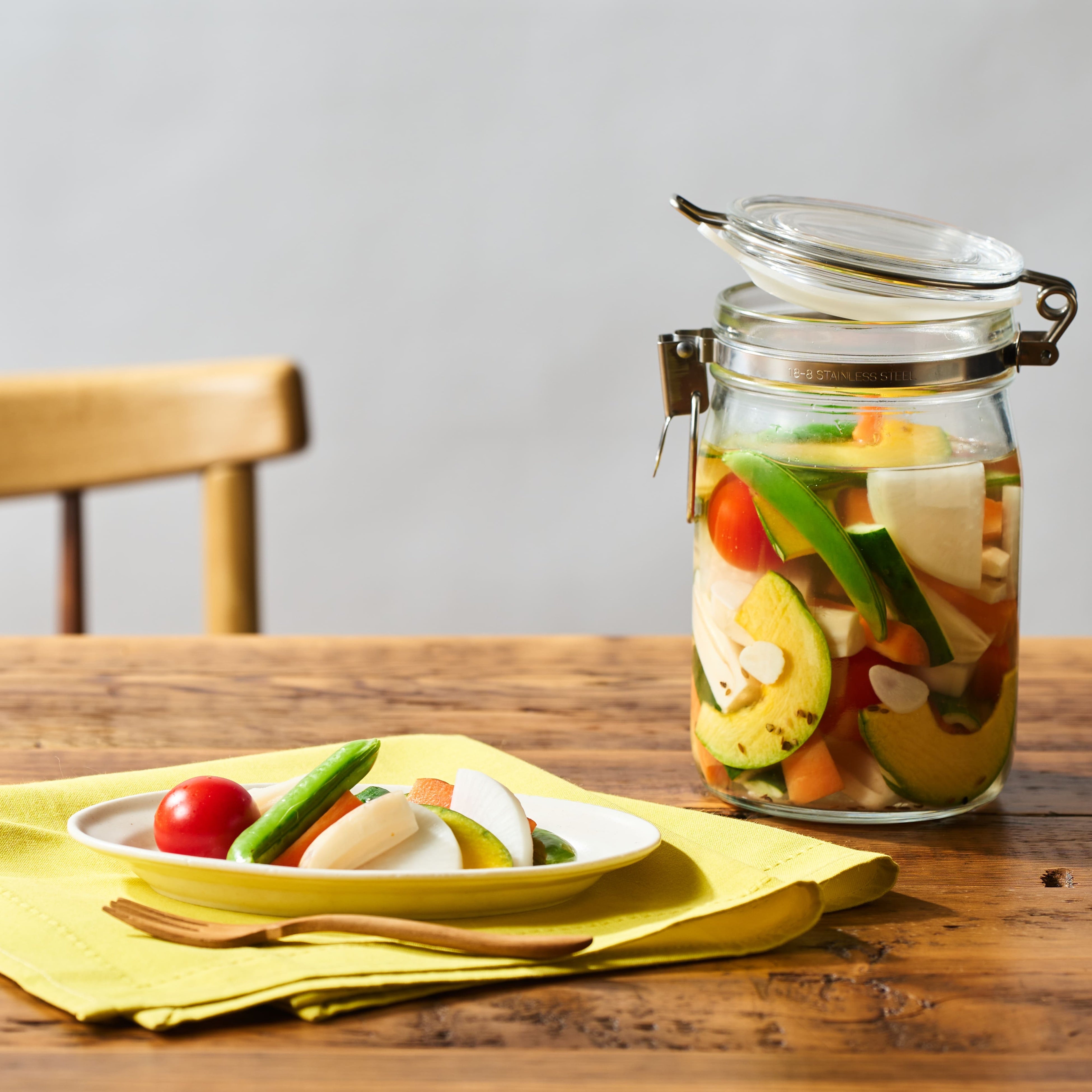 この時期が旬の野菜を含め、7種の野菜をつめこんだカラフルな自家製ピクルスが作れます。ドライハーブなどが入ったスパイスミックスもお届けし、ご家庭でご用意いただくのは砂糖と水のみ。本格的な味を手軽にお楽しみいただけます。