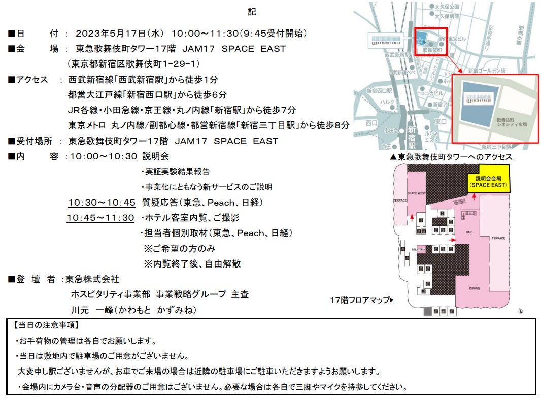 ■日時 : 2023年5月17日(水) 10:00~11:30(9:45受付開始)■会場 : 東急歌舞伎町タワー17階 JAM17 SPACE EAST
