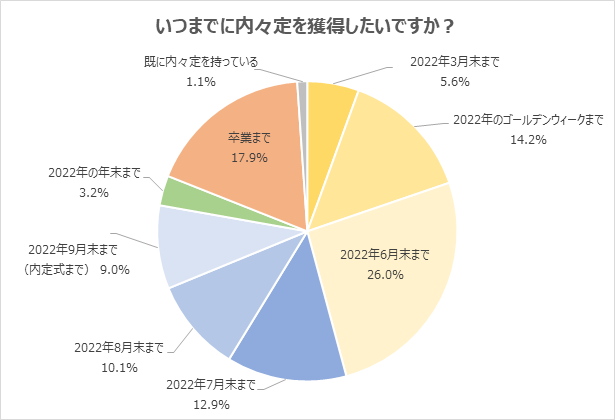(2) 内々定を獲得したい時期は「2022年6月末まで」が最多。6月末までの内々定獲得を希望する学生が4割超