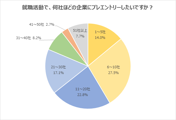 プレエントリーを予定している企業数は、「10社以下」が4割を超える。「志望度の高い企業の選考に力を入れたい」「1社1社丁寧に選考を受けたい」の声/2023年卒アンケート