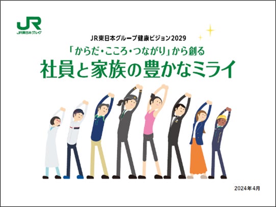 〇JR東日本グループは、グループ経営ビジョン「変革 2027」において「健康経営の推進」を掲げ、「社員・家族の幸福の実現」を目指しています。 〇このたび、社員一人ひとりの健康レベルのさらなる向上とグループの持続的な成長を目指し、健康に関する2024年度から2029年度までの中期計画である「JR東日本グループ健康ビジョン2029」を策定しました。 〇戦略的な健康経営を推進することで、社員の健康レベル向上とグループの持続的な成長を実現し、「社員と会社の新たなエンゲージメント」を創出します。あわせて健康寿命の延伸や医療費の適正化など社会的課題の解決にも貢献していきます。 |