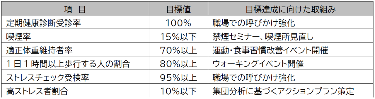 ・全社員への勉強会等で健康創りの「主役」である社員一人ひとりの健康意識とヘルスリテラシーを高め、健康情報システムから作成される健康診断レポートの活用などにより健康レベル向上を目指します。