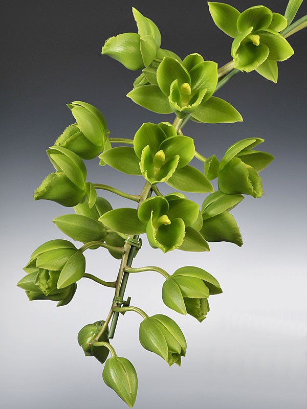 蘭というと胡蝶蘭やカトレヤがよく知られていますが、私たちは花の形も、色も、大きさも異なる、たくさんの種類の蘭を栽培しています。品種改良によって優れた色彩や形、大きさの花が次々と発表され、興味が尽きることはありません。蘭の花は素敵な香りも魅力ですし、今回特集している「タケノコ蘭」のように、株の姿に特徴があるものも あります。
