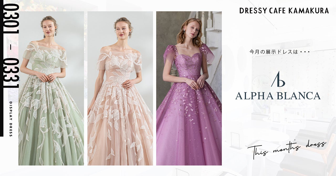 【DRESSY CAFE KAMAKURA】3月のディスプレイドレスは「ALPHA BLANCA」のウェディングドレスを期間限定でお届けいたします。