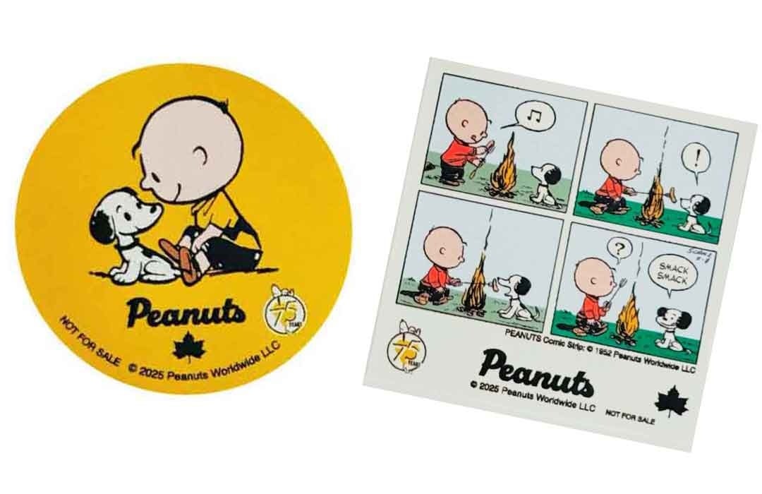 期間中に全国のロゴスショップ直営店でスヌーピーアイテムをご購入いただいたお客様限定で、コミック「PEANUTS」誕生75周年オリジナル記念ステッカープレゼント!
