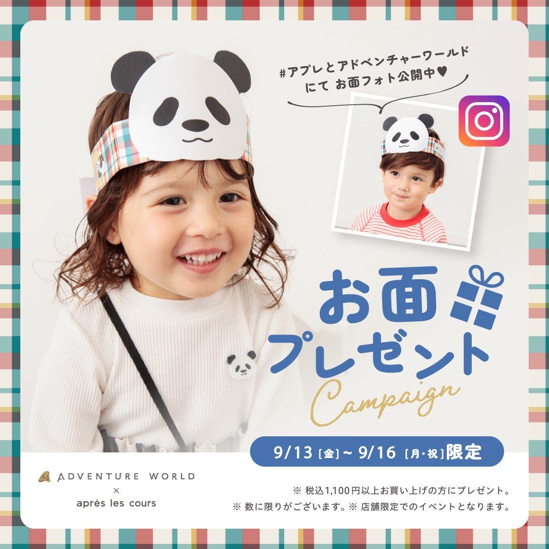 コラボを記念して、「après les cours」の実店舗限定でオリジナルパンダのお面をプレゼント。