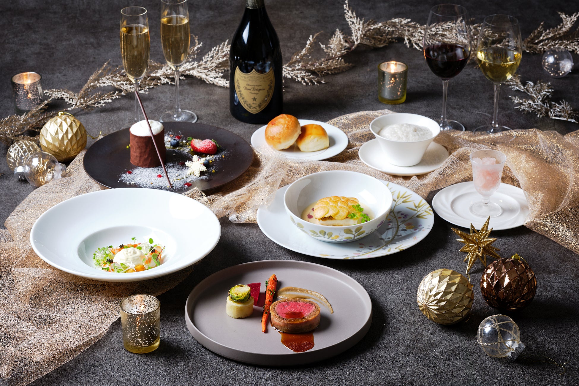 また、ドリンクは乾杯酒のシャンパンで華やかにディナーをスタートし、料理に合わせて白・赤ワイン、豊富なオリジナルノンアルコールカクテルなどもフリードリンクでご用意いたします。さらに、特別な夜を華やかに彩る「ドン ペリニヨン」で乾杯するプランや、レインボーブリッジやお台場などの東京湾の夜景を間近でご覧いただける窓側確約のプランも揃え、スペシャルなクリスマスを演出いたします。