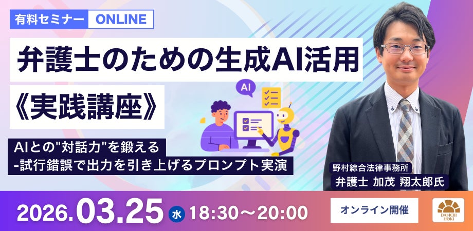 「弁護士のための生成AI活用《実践講座》 AIとの"対話力"を鍛える-試行錯誤で出力を引き上げるプロンプト実演」オンラインセミナー |