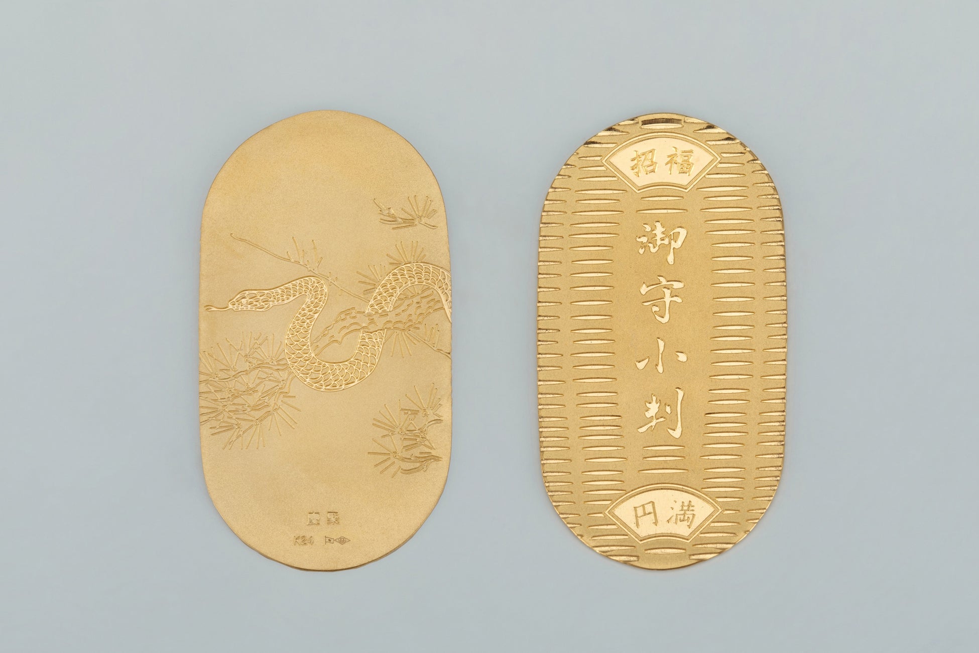 2025年の干支「巳」柄の小判。大切な資産をお子様やお孫様に継承したいという思いにお応えできる、人気の高い商品です。