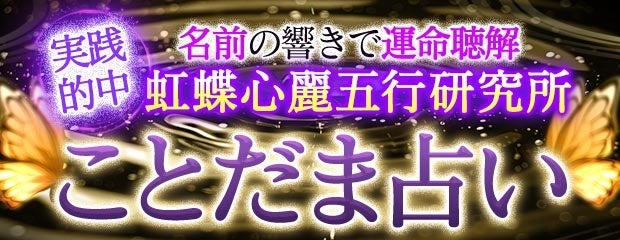 ことだま占い|「口より発したものは現実となる」名前の響きを基に運命や感情を、五行で読み解く“ことだま占い”。虹蝶心麗五行研究所の主宰・虹蝶が技術の粋を究めた鑑定。呼び名に宿る魂の根源に迫り当て尽します。実践的に現実を聴解する圧巻の実力を今ご体感ください。