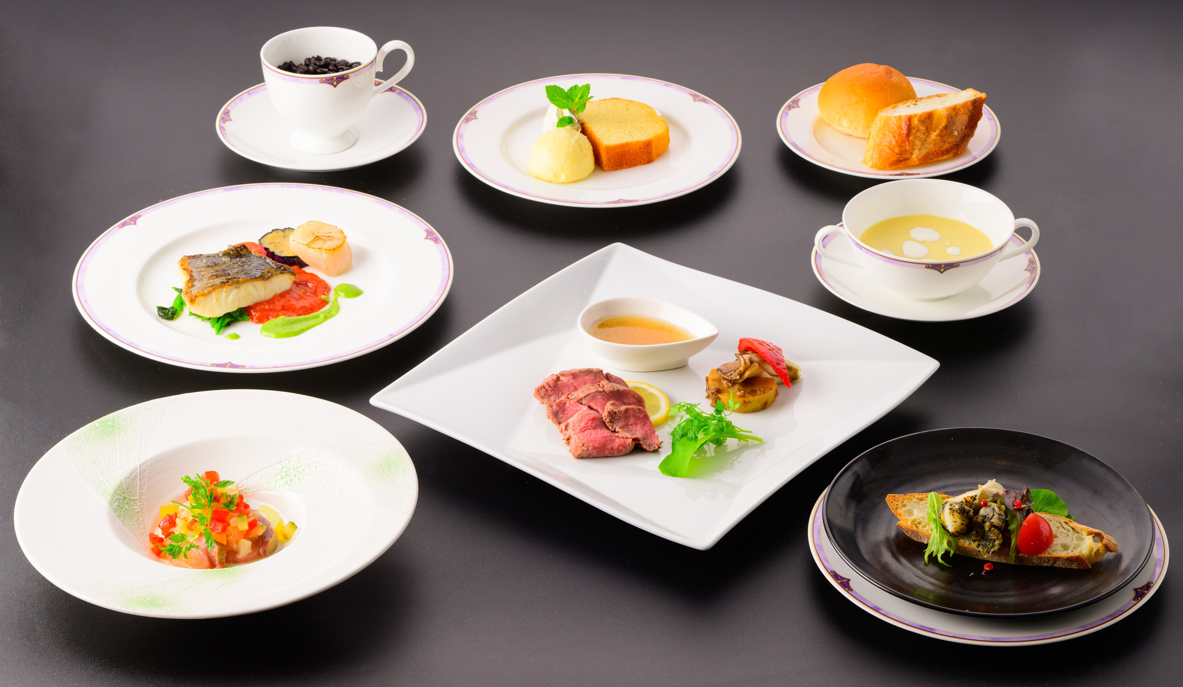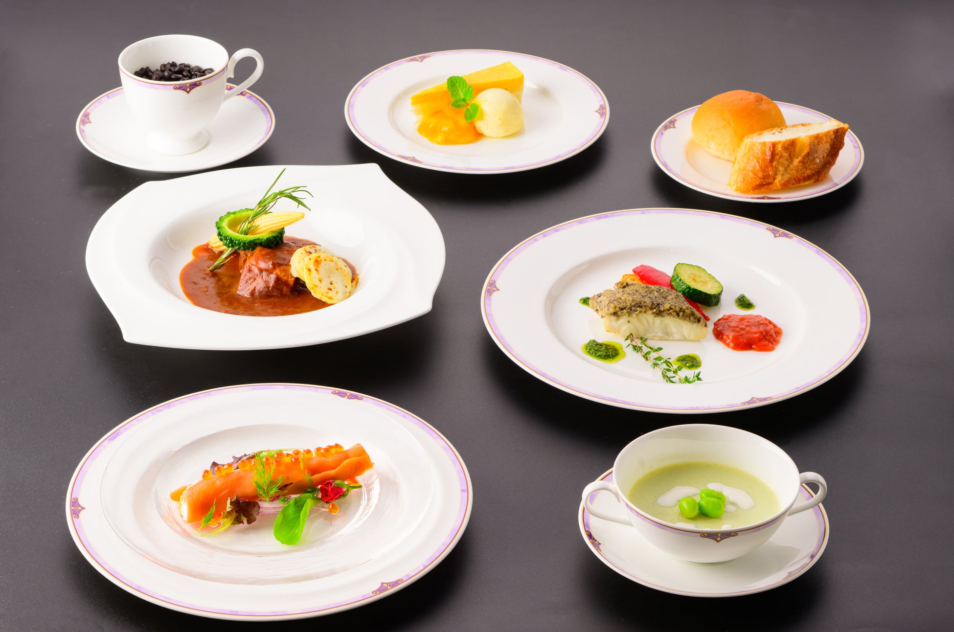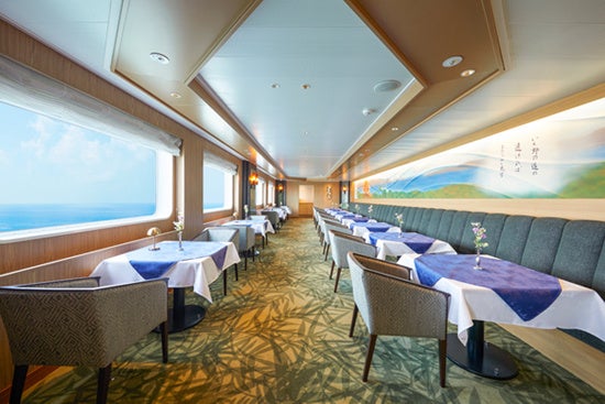 お料理はシーズンごとに旬と寄港地の食材を使用した本格的なコース料理をご用意。メニューは北海道・小樽に位置する当社グループ「オーセントホテル小樽」総料理長監修。ホテルクオリティの本格的なコース料理を船上でご堪能いただき、当社のコンセプトとする「Cruising Resort」を存分に満喫いただける施設となっております。