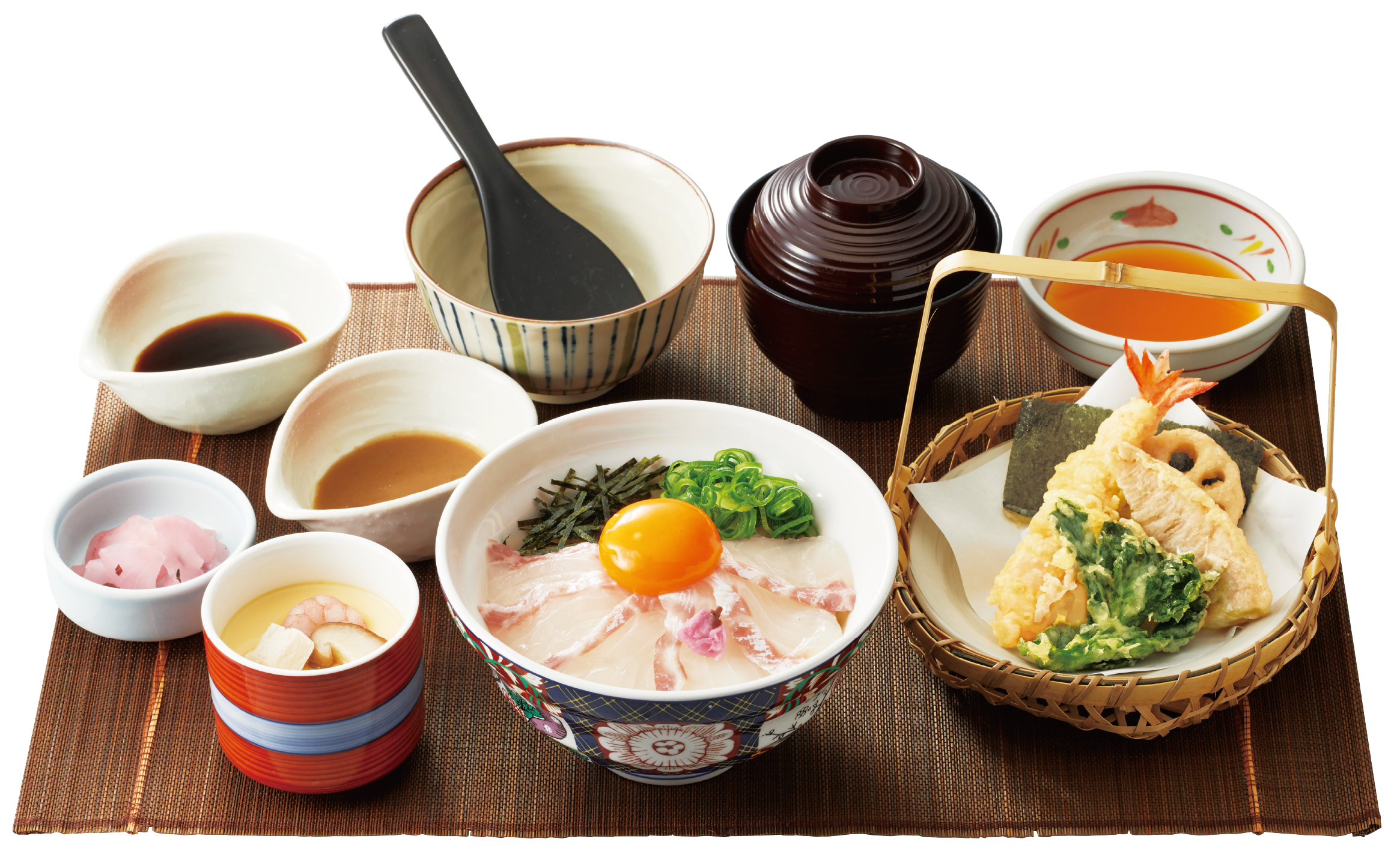 (1)たっぷりの鯛のお刺身を、卵黄と特製たれ2種で味変も自在に楽しめる「宇和島風 鯛めし膳」