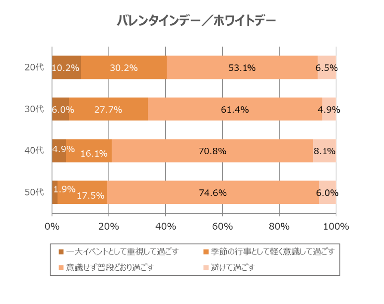 「避けて過ごす」という選択をする層もわずかに見られますが、イベントを重視する層がそれを遥かに上回っています。「キャンセル界隈」という言葉は「若者の行事離れ」とは必ずしも結び付かないことが見受けられます。
