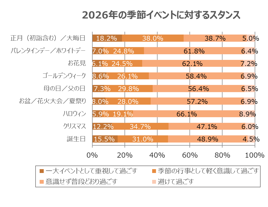 ■2026年に「重視して過ごす」イベントは、1位「正月/大晦日」、2位「誕生日」、3位「クリスマス」