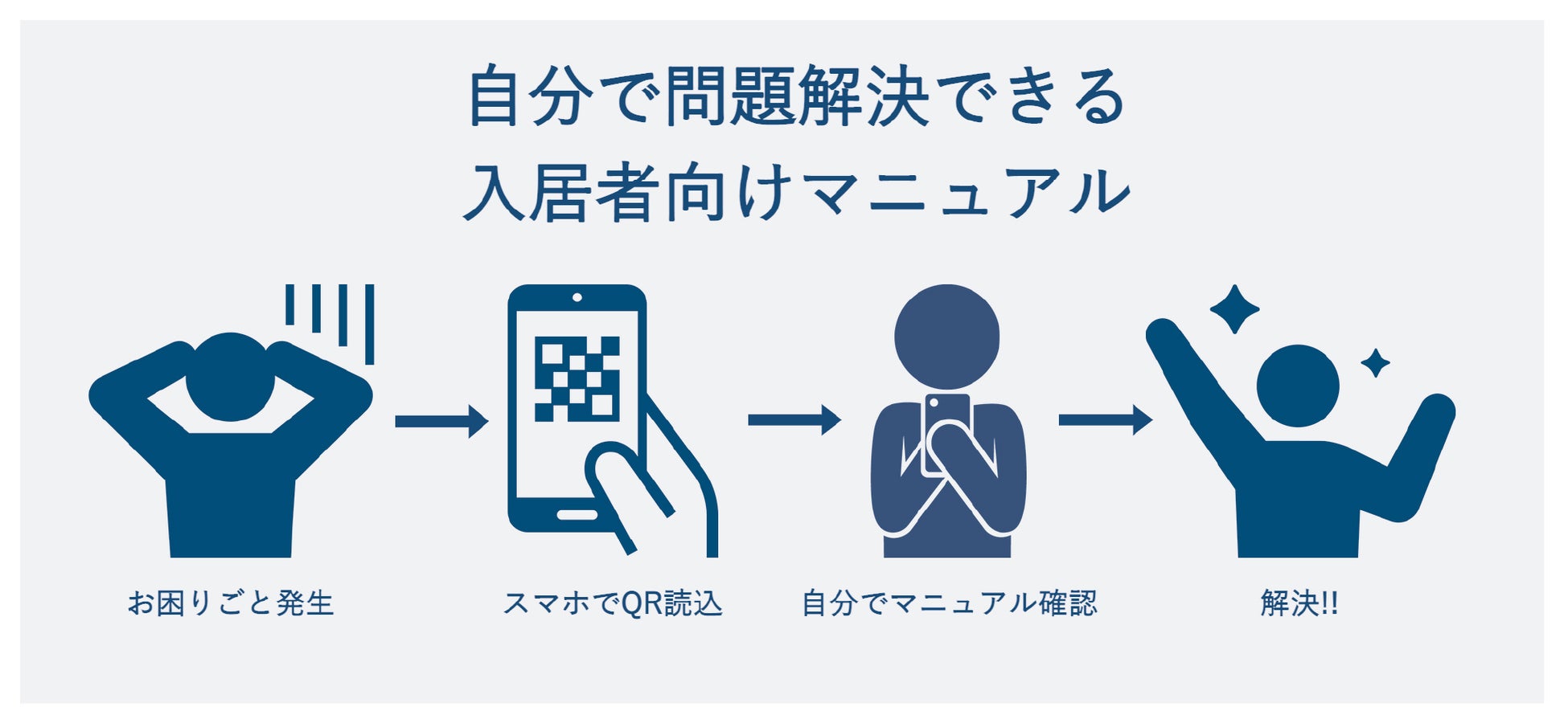 「入居者たすけっと」は、賃貸物件でお困りごとが発生した際に、入居者が2次元コードからWEBマニュアルにアクセスすることで、入居者自身で問題が解決できる入居者専用のノーコードWEBマニュアルツールです。