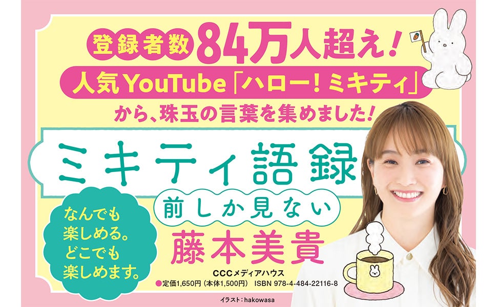 登録者数84万人を超える人気YouTubeから集めた、珠玉の105の言葉。株式会社CCCメディアハウスは、2024年9月3日(火)にタレント・藤本美貴の『ミキティ語録 前しか見ない』を発売いたします。
