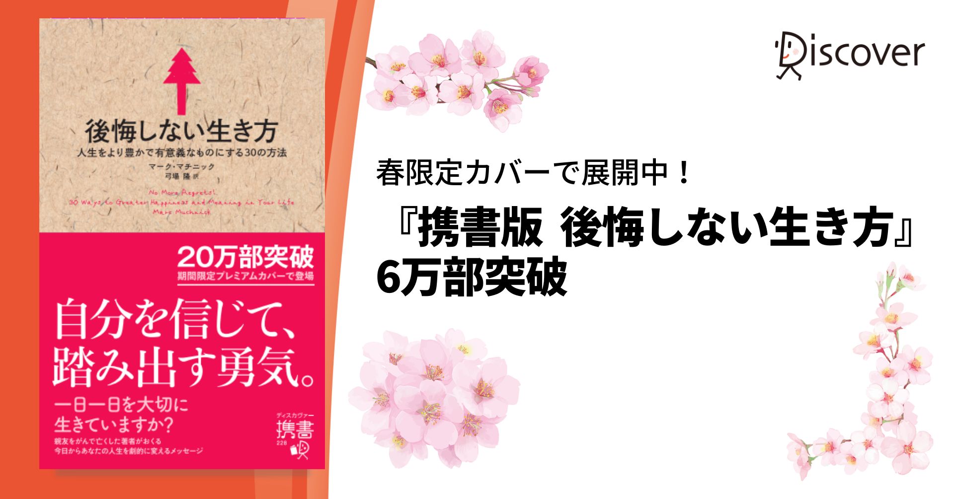 株式会社ディスカヴァー・トゥエンティワン(本社:東京都千代田区、取締役社長:谷口奈緒美)は、2021年5月28日刊行の『携書版 後悔しない生き方』(マーク・マチニック 著)を増刷し、10刷6万部を突破しました。