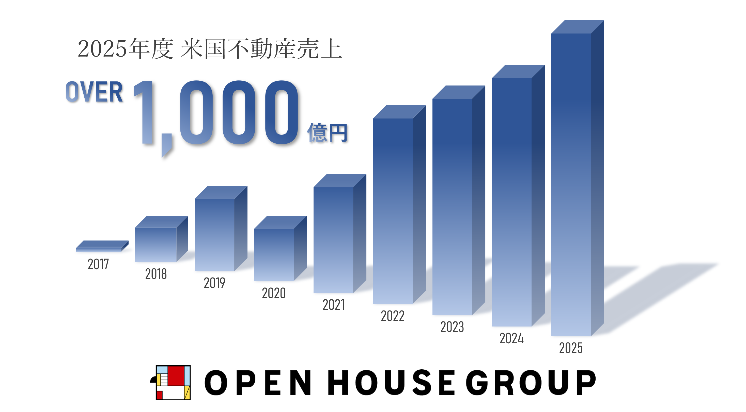 株式会社オープンハウスグループ(本社 東京都千代田区、代表取締役社長 福岡 良介、以下「当社」)のグループ子会社である株式会社オープンハウス(以下「オープンハウス」)は、2017年8月より本格的に始動した米国不動産事業の2025年度の売上が1,000億円を達成しましたことをご報告いたします。