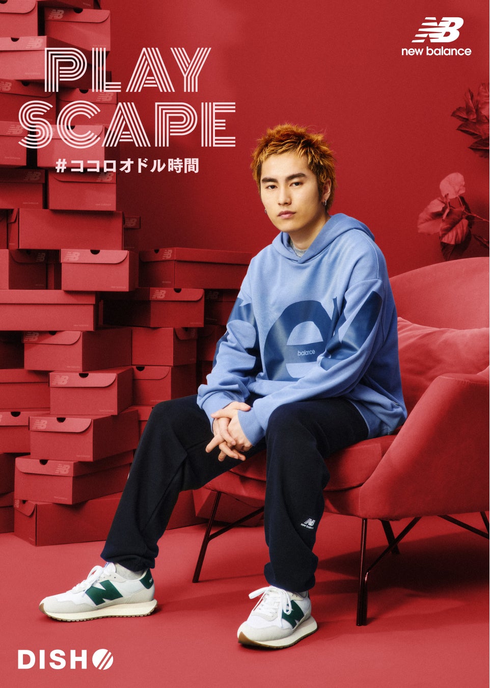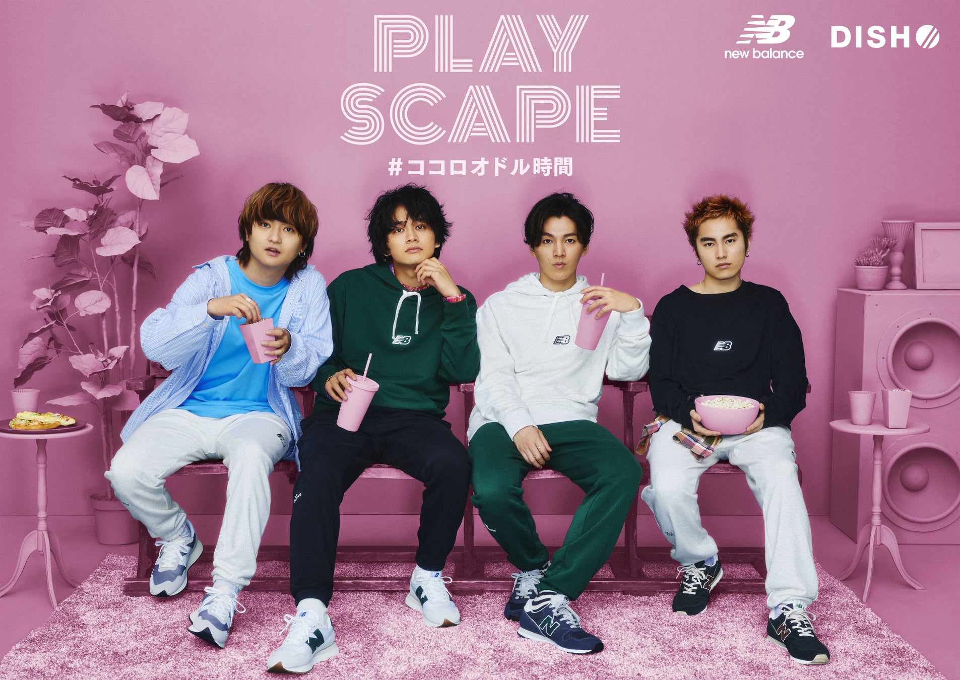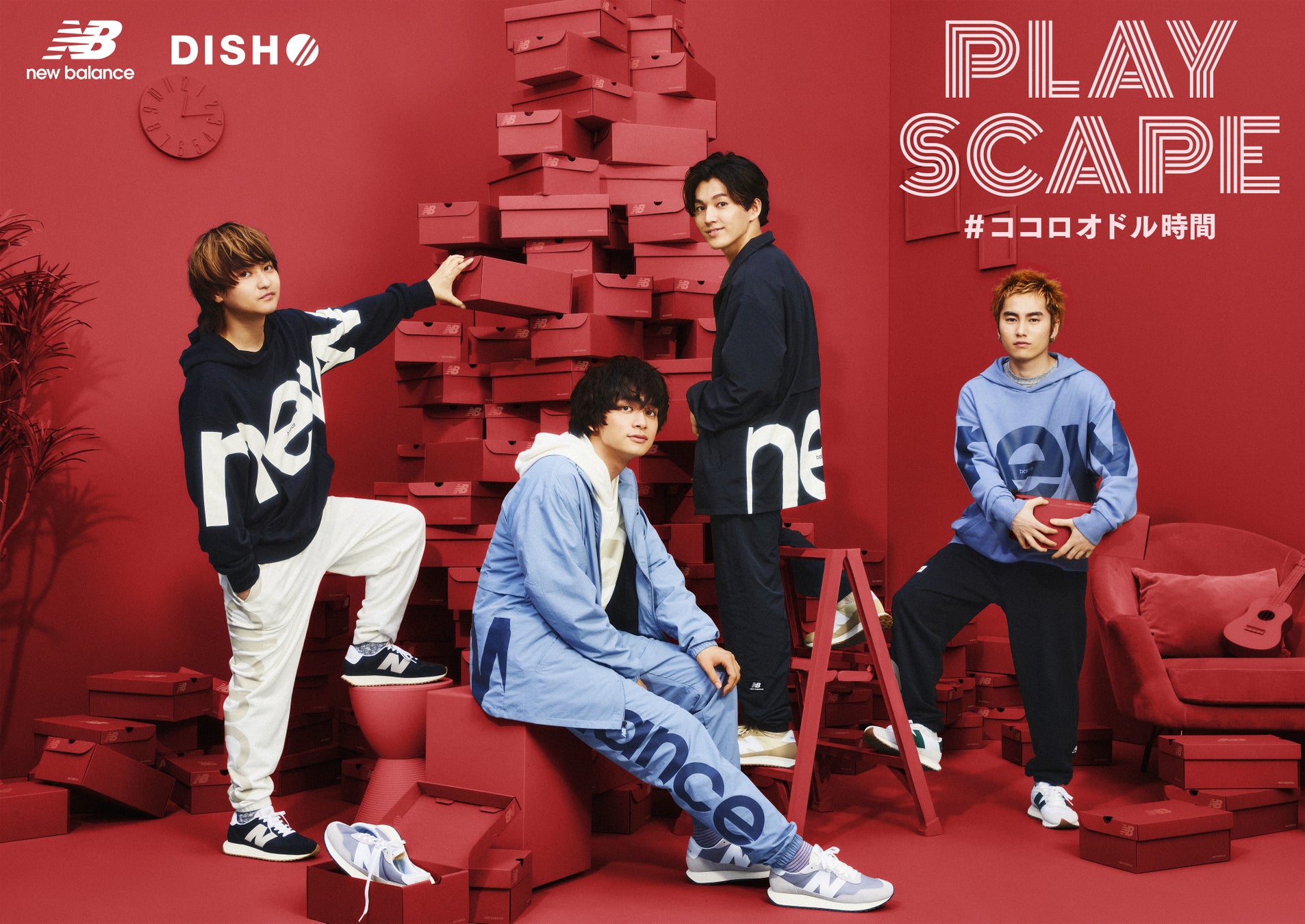 ニューバランスのシューズボックスでDISH//メンバーがゲームを楽しんでいる部屋