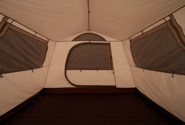 室内は広々とした空間で居住性に優れており、最大6人での使用が可能。流線型のドーム型テントに比べ、キャビン型テントは壁面が立ち上がっているため、広々とした空間を確保。