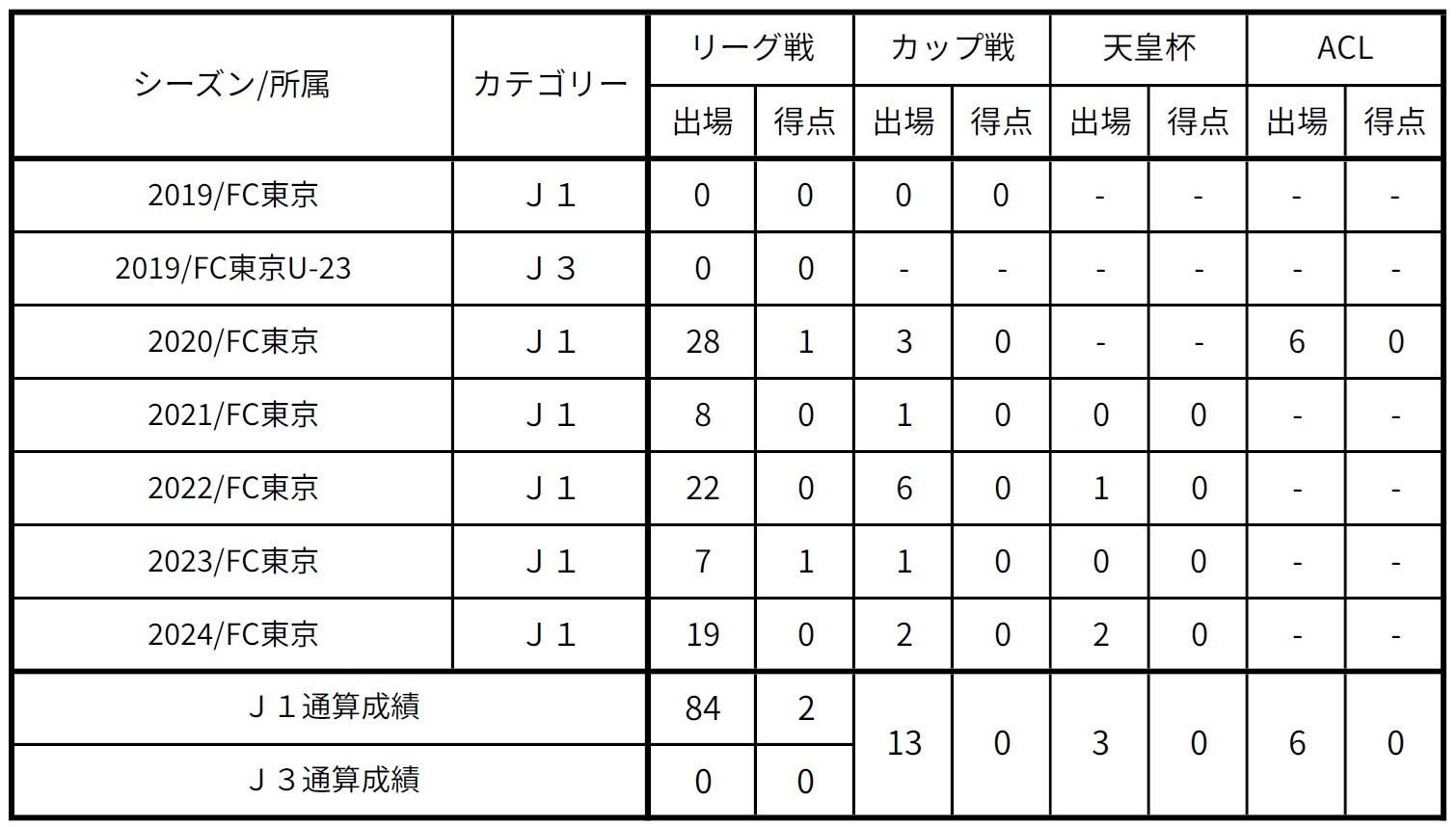 □出場記録(2024シーズン終了時点)