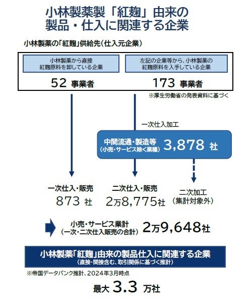 小林製薬「紅麹」製品、最大3.3万社に流通の可能性 一次加工で最多は「製造業」2423社