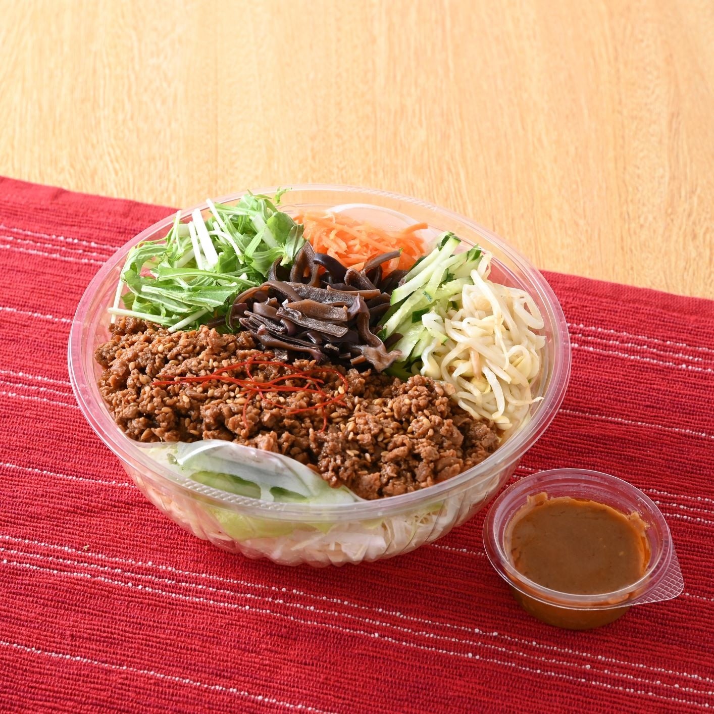 【内容】たんぱく質と食物繊維が摂れるパスタサラダです。鶏肉と大豆ミートを使ったピリ辛そぼろに野菜をトッピングしました。ピリ辛ごまドレッシングをかけてお召し上がりください。たんぱく質18.2g 食物繊維9.9g。